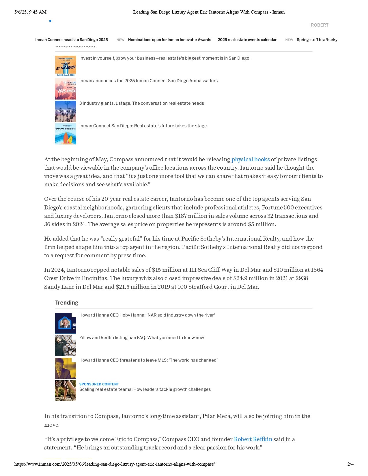 Leading San Diego Luxury Agent Eric Iantorno Alignes with Compass