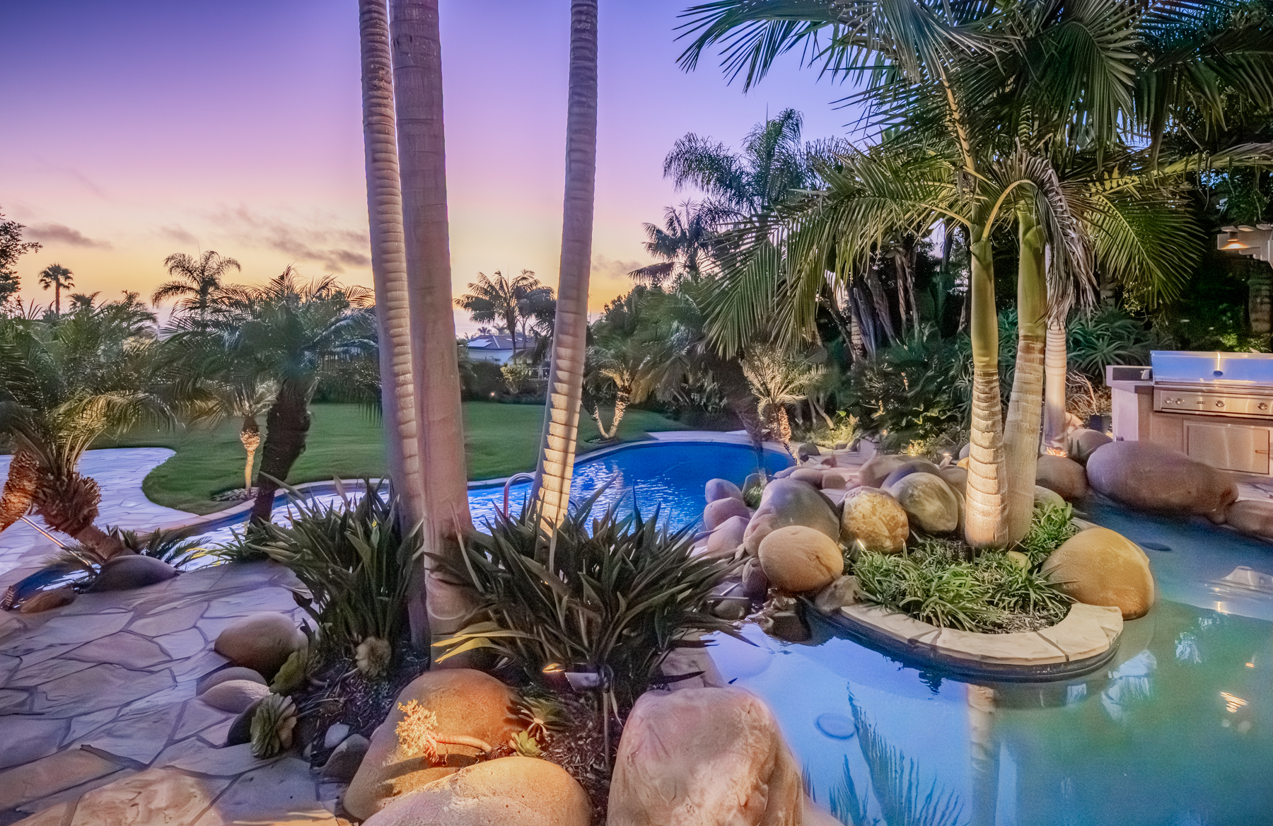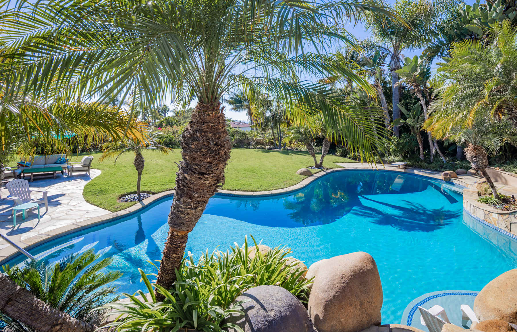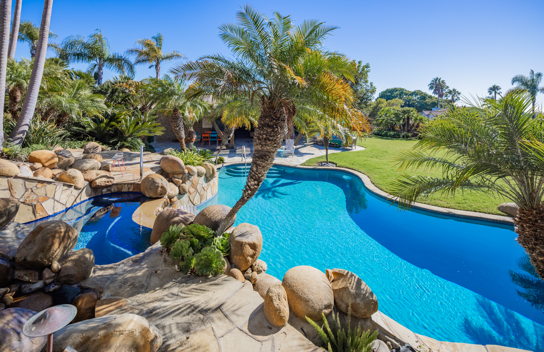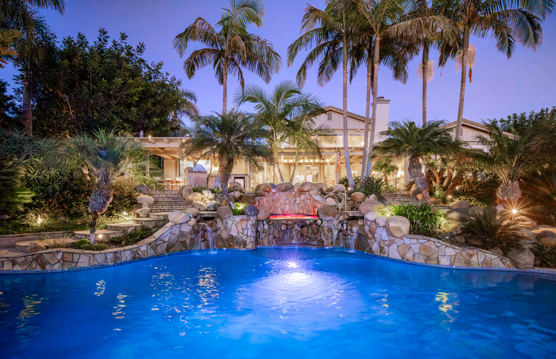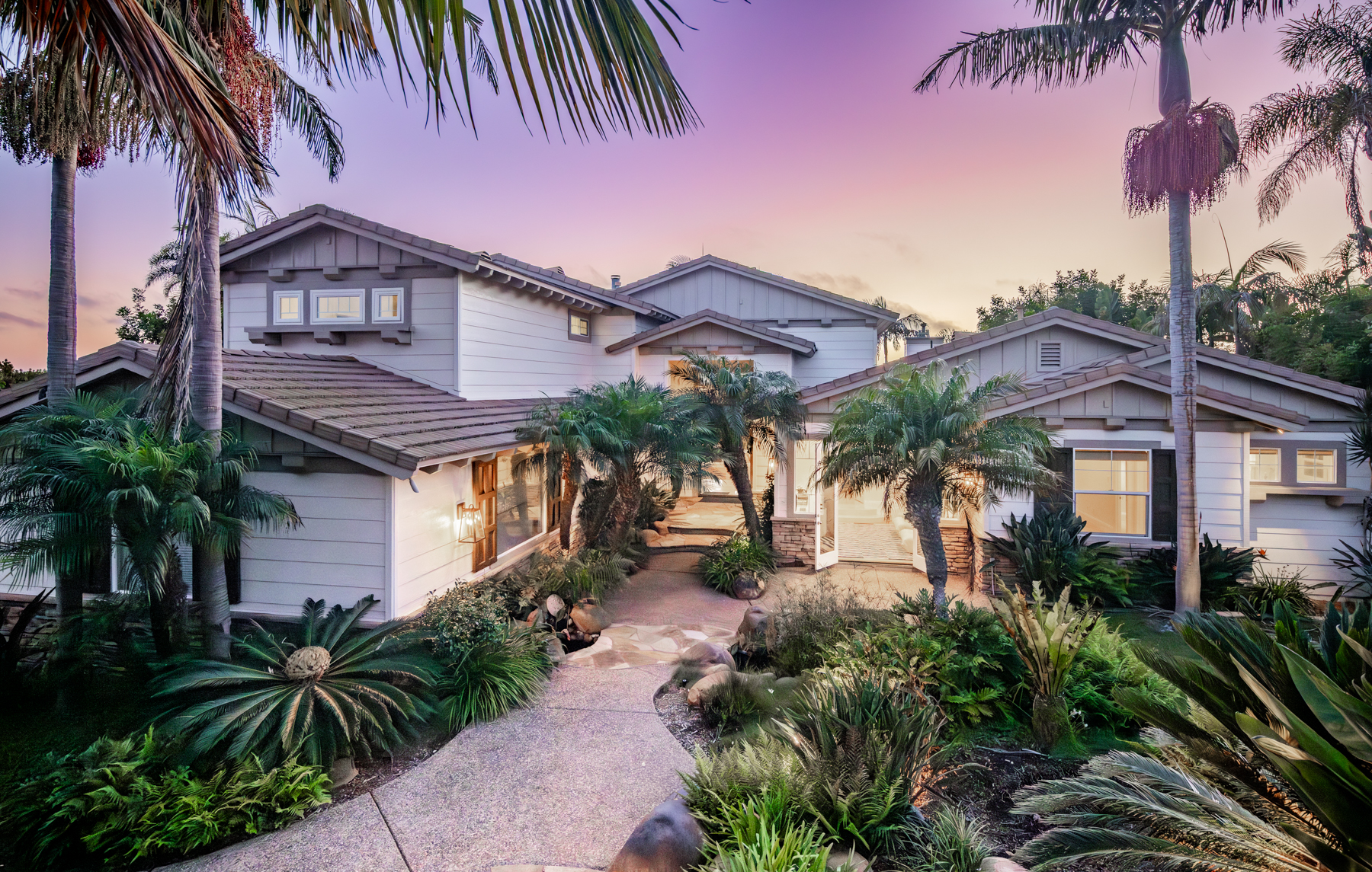 This extraordinary Encinitas estate spans over 5,700 square feet and includes a private guest house and pool house, all nestled on a gated one-acre lot with sweeping ocean and sunset views. Located in an exclusive community that has attracted some of San Diego’s most well-known names in music and action sports, this home is truly one of a kind.